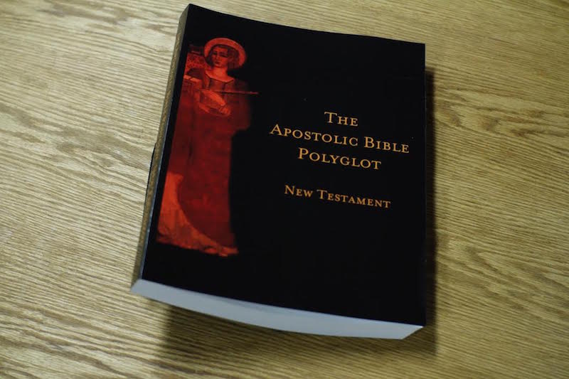 NEW TESTAMENT: The Apostolic Bible Polyglot New Testament is now available in a single book . The book is much larger than the 2nd edition and measure 8.5 x 11. The 60# white Lynx Opaque offset paper is also thicker with no bleed through, along with having wider margins for note taking. The covers are Tango 12 point C1s , a heavy-weight stock that is coated on one side with a gloss film for added protection. The books are printed in the United States via digital print, and are bound with an EVA glued binding.